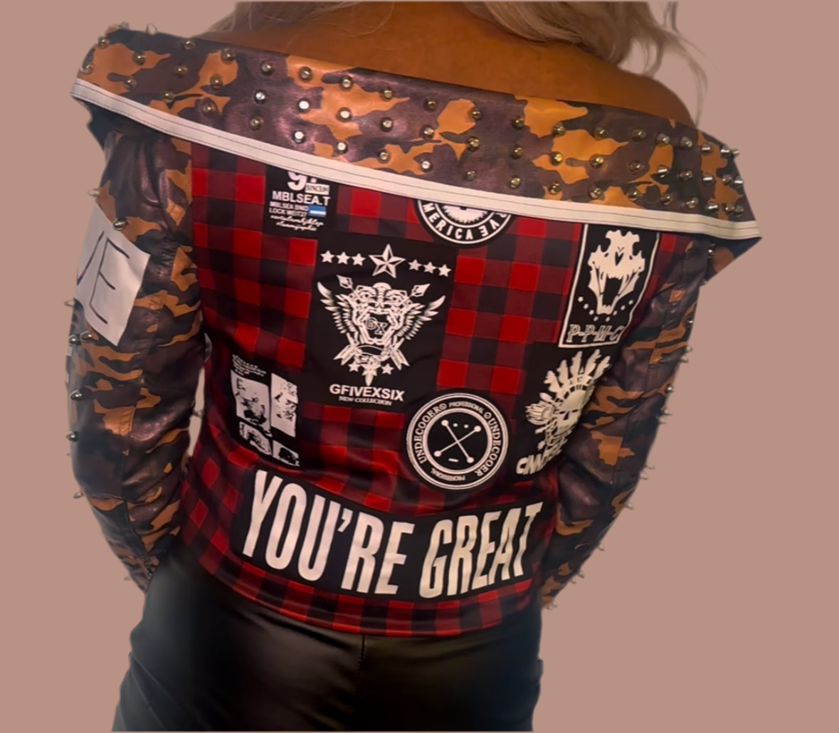 Off shoulder leather top. Patchwork. Can be worn as a shirt or jacket